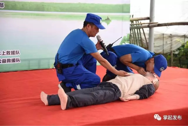 上午10点,在马焕勇副市长发表致辞后,市红十字会群狼公益救援队进行防溺水知识宣讲及心肺复苏讲解。志愿者们生动的示范和详细的讲解,增加了群众预防溺水的意识和认知,一定程度提高了在场市民溺水事故的救护能力。