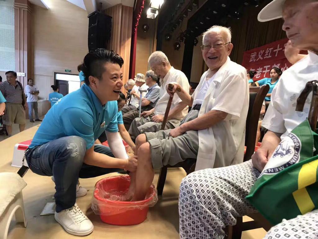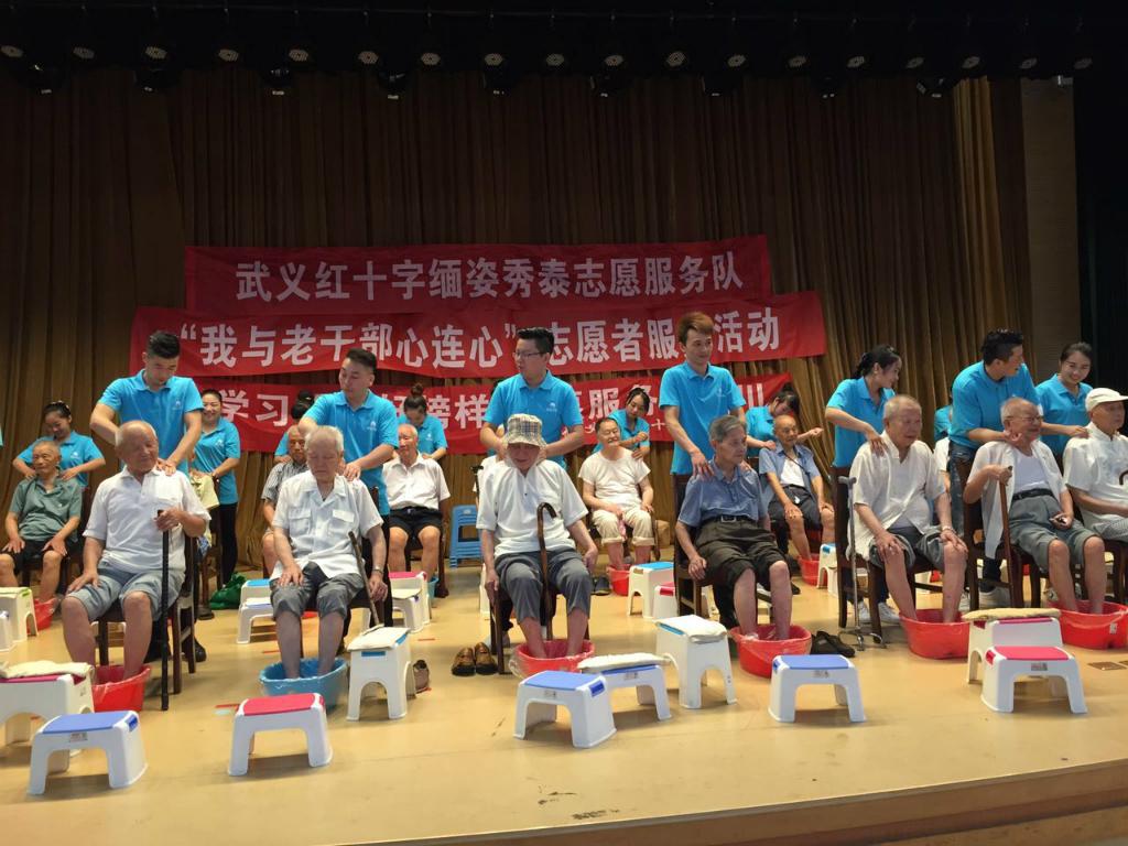 8月3日,武义县红十字会携缅姿秀泰足浴店、回元堂国药馆、简诺发型,到武义县老干部局开展敬老、爱老志愿服务,弘扬中华民族传统美德。 缅姿秀泰志愿者服务队的足疗技师们,一下车就开始忙碌起来了,他们端起脚盆,倒入温水,并准备好工具来到老人身边。足疗技师们有的在为老干部捶背、按摩。有的则弯着腰,低着头,忙着给老干部修剪脚指甲。 回元堂国药馆的医生在为老干部贴心测量血压的同时,细心询问老干部近来的身体状况,为他们提供专业的建议。 简诺发型店的理发师用他们精湛手艺使老人变得个个神采奕奕。