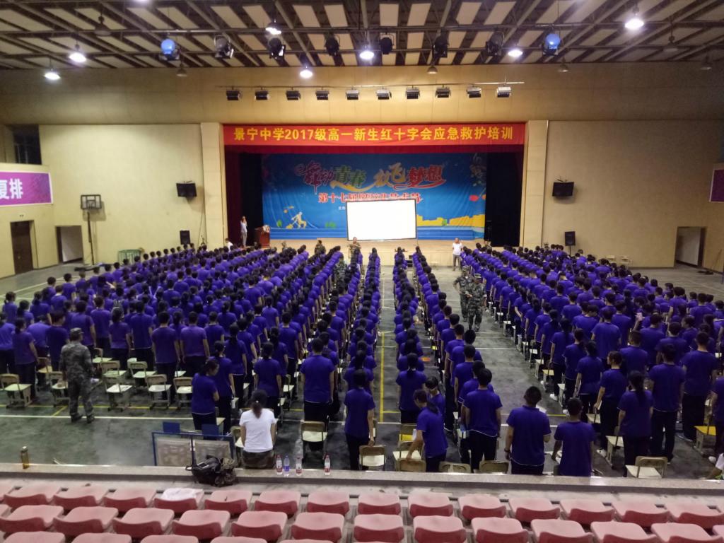 8月17日晚,景宁县红十字会在景宁中学举行红十字应急救护进校园活动,共为景宁中学2017级560名高一新生及教师免费进行应急救护知识培训。