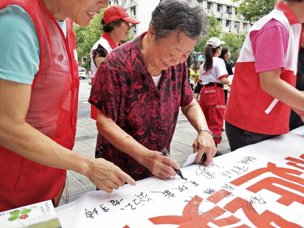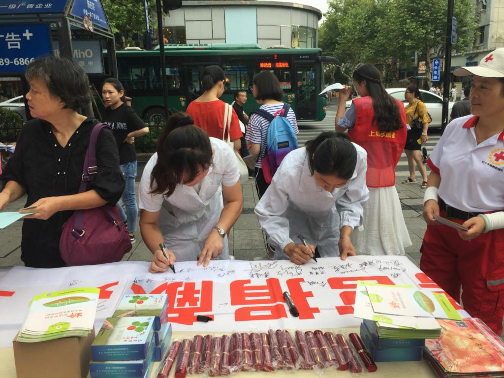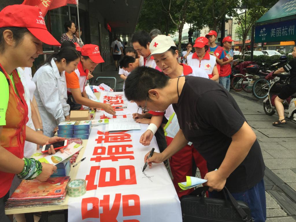 如果生命不能继续,就让生命延续!有一群人,他们虽然悄然离开了这个世界,却把自己无私地捐献出来,用奉献谱写了生命赞歌,他们就是“遗体器官捐献者”。8月12日上午,上城区红十字会、湖滨红十字志愿服务队在湖滨龙翔桥献血点共同发起了一场以“器官捐献,生命延续,大爱永存千人签字祈福”为主题的遗体器官捐献宣传活动。 热心交警、救援队队员、环卫工人、出租车司机、志愿者、爱心市民……来自各行各业的爱心人士们纷纷聚集到这里,积极参与其中,为遗体器官捐献者签字祈福,缅怀祭奠这些大爱先行者,感恩他们的付出,传播他们无私奉献的精神。活动现场还有30位爱心人士填写了遗体器官捐献登记表。 今年以来,上城区已成功捐献大器官6例,脑组织2例,眼角膜7例,遗体7例。大爱先行者们离开了,却以另一种形式活了下来,为他人带去健康和光明,为祖国医学科研事业做出贡献,留下了沉甸甸的生命礼物,让爱在你我手中传递,温暖上城。(孙洁)