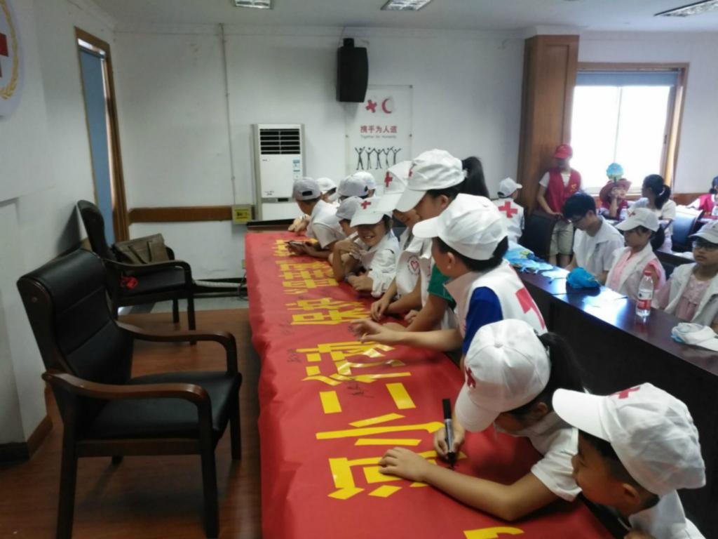 行动前的动员会,共同聆听红十字讲座,学习五水共治小知识,集体签名承诺,争做环保小卫士。