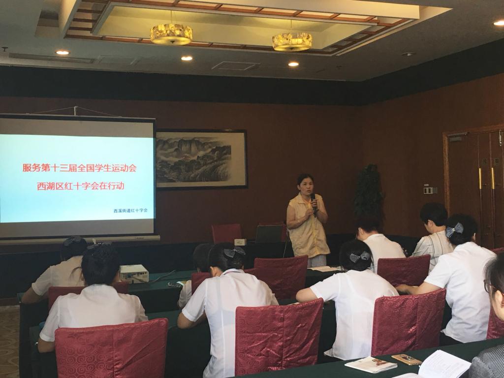 2017年9月,第十三届全国学生运动会将在美丽的杭州拉开激烈角逐的帷幕。西湖区红十字会继续发挥去年G20峰会期间开展救护培训“不怕苦不怕累”的精神,组织开展“助力第十三届全国学生运动会服务保障—西湖红十字在行动”救护培训活动。