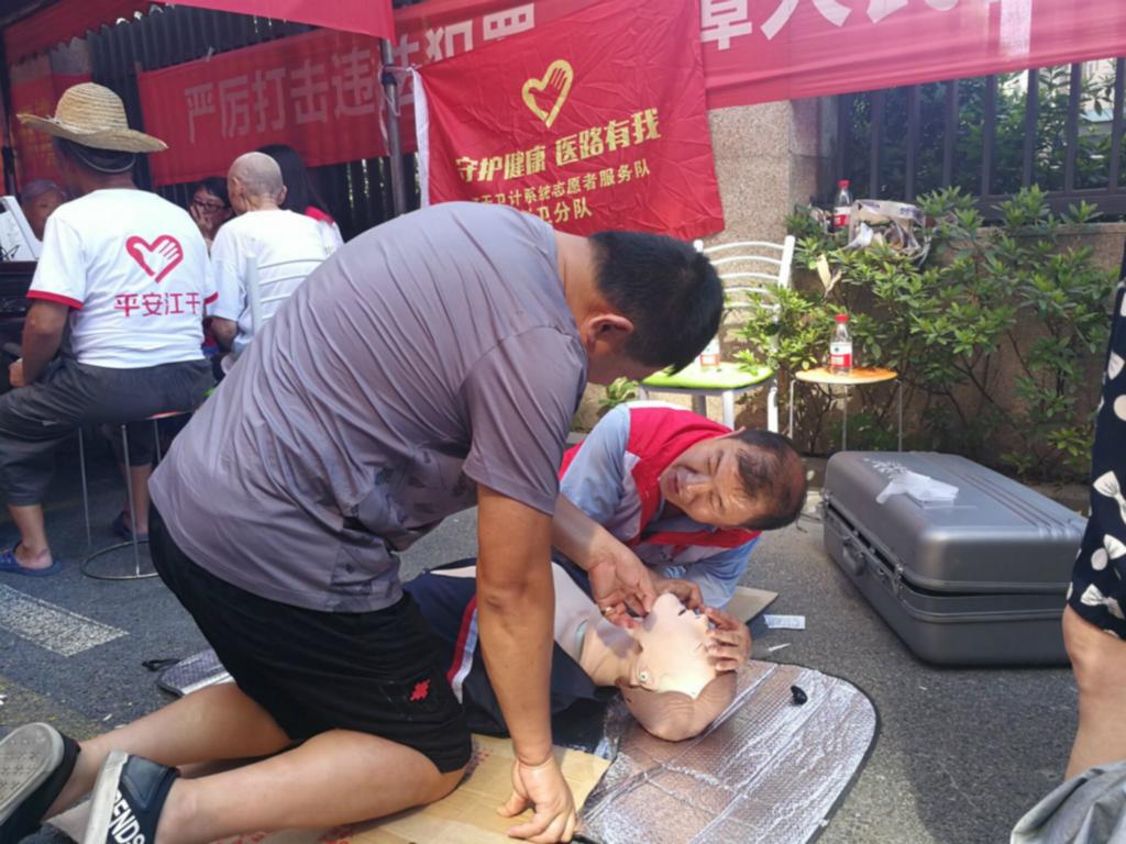 “来来来,这里可以学救命的技能哦!”红十字志愿者许有云一声吆喝,很快在心肺复苏模型前围拢了一大群学习红十字急救知识技能的市民。“这个操作难不难啊?我们从电视上看到都是医务人员做的啊,我们能行吗?”来自社区的小李虽然来到教学点前、心中还是有顾虑。“意外伤害事件往往不以人的意志为转移,大家只要仔细听、跟我认真做,人人都能成为‘第一施救者’和‘急救达人’!”江干区红十字应急救护培训二级师资巫慧英说。半天下来,有30余名市民学习并掌握了心肺复苏的正确操作。“这个培训好,下次遇到意外情况,我们就不会手足无措嘞”小李学好后说。