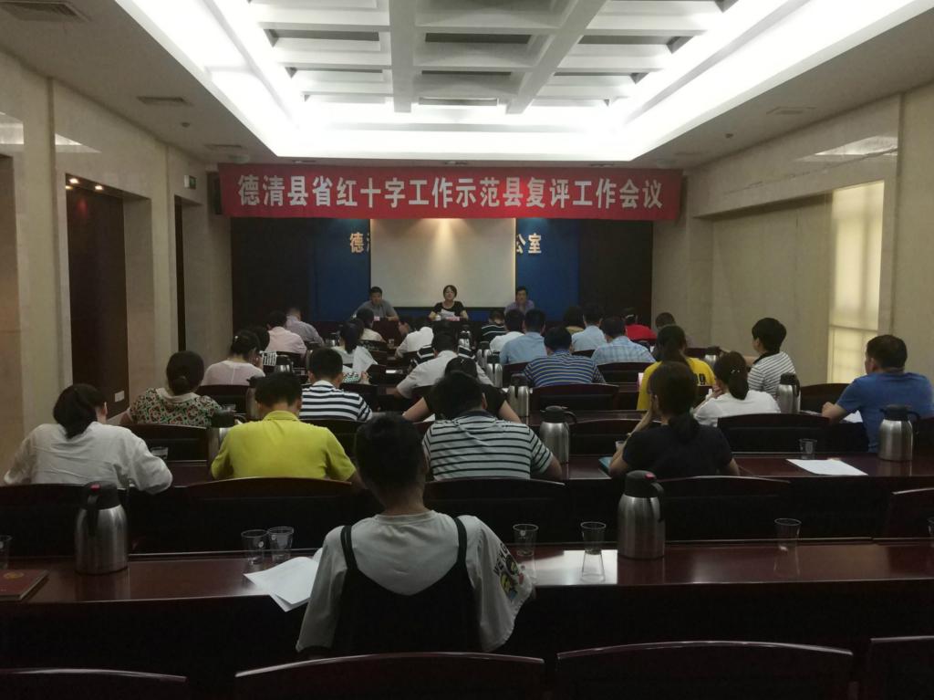 2014年,德清县被首批授予 “浙江省红十字工作示范县”,也是湖州市唯一的一个县(区)。今年将要迎来省红十字会的复评,对我县近三年来发挥示范作用的效果进行再检查。会上,县红十字会明确复评的工作目标,分阶段、分步骤进行了任务安排,就迎接复评考核工作进行了部署。