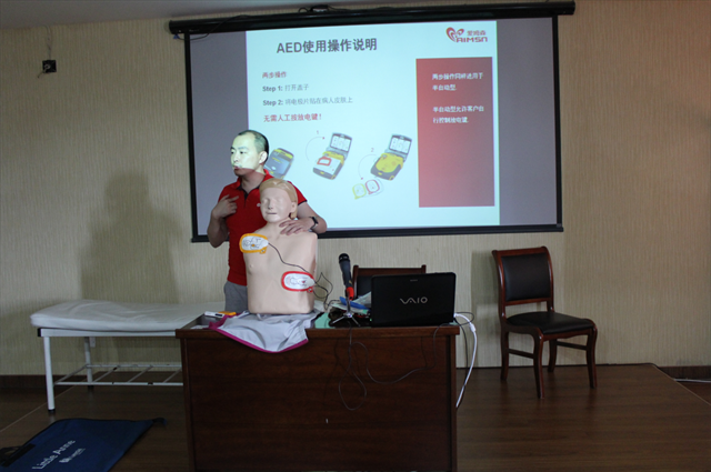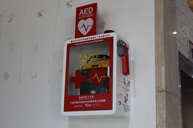 7月27日下午,在余姚市全民健身中心健身馆三楼会议室,来自市高考考点、游泳中考考点、市红十字应急救护知识宣讲队等相关人员51人,参加由市红十字会组织的AED(自动体外除颤仪)使用技能培训。而在旁边的游泳馆内,施工人员正将一台崭新的AED安装到服务台附近,这也标志着余姚市首批AED全部投放到位。