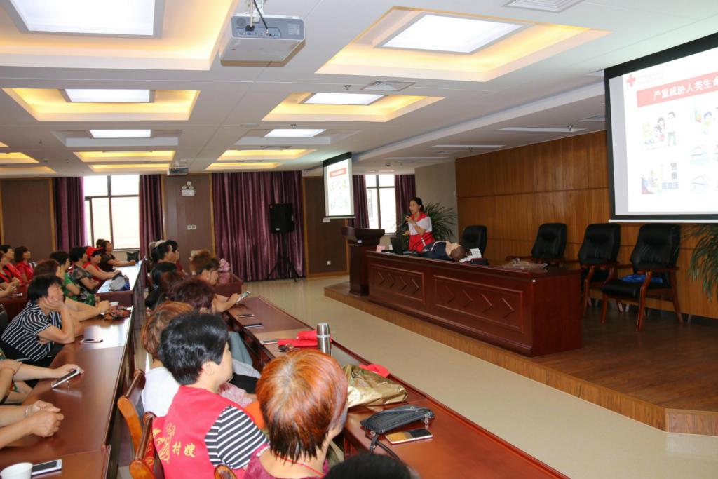 活动中,市红十字会讲师商霞芳老师现场授课,普及应急救护知识和现场急救技能,内容包含了心肺复苏术,创伤急救的止血、包扎、固定、搬运,常见意外特殊伤的现场急救等。甘霖镇各村村嫂及卫生院相关人员共100余人参加了培训。