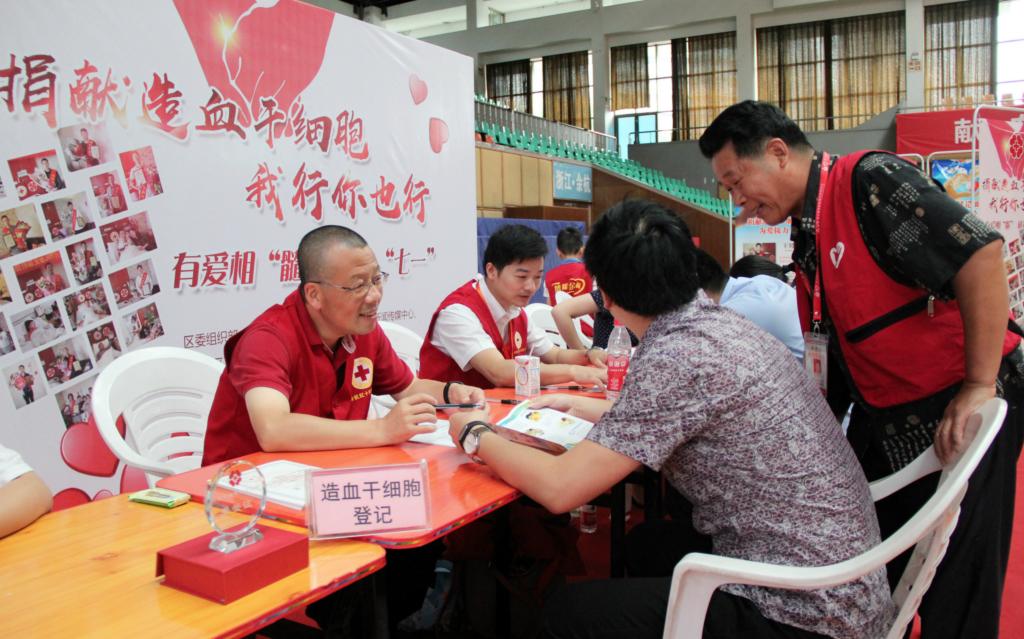 7月3日,“‘不忘初心 砥砺前行’——我为七一献热血”主题活动在余杭区体育馆内举行。76个区机关单位的460名党员来到现场捋袖献爱心。其中373人成功献血,累计献血量达88900毫升,38人进行造血干细胞留样登记,成功加入中华骨髓库(中国造血干细胞捐献者资料库)。余杭多位造血干细胞成功捐献者在“我为‘七一’献热血”现场,以自己的亲身经历宣传动员“捐献造血干细胞,我行你也行”,并服务爱心人士进行造血干细胞登记入库。