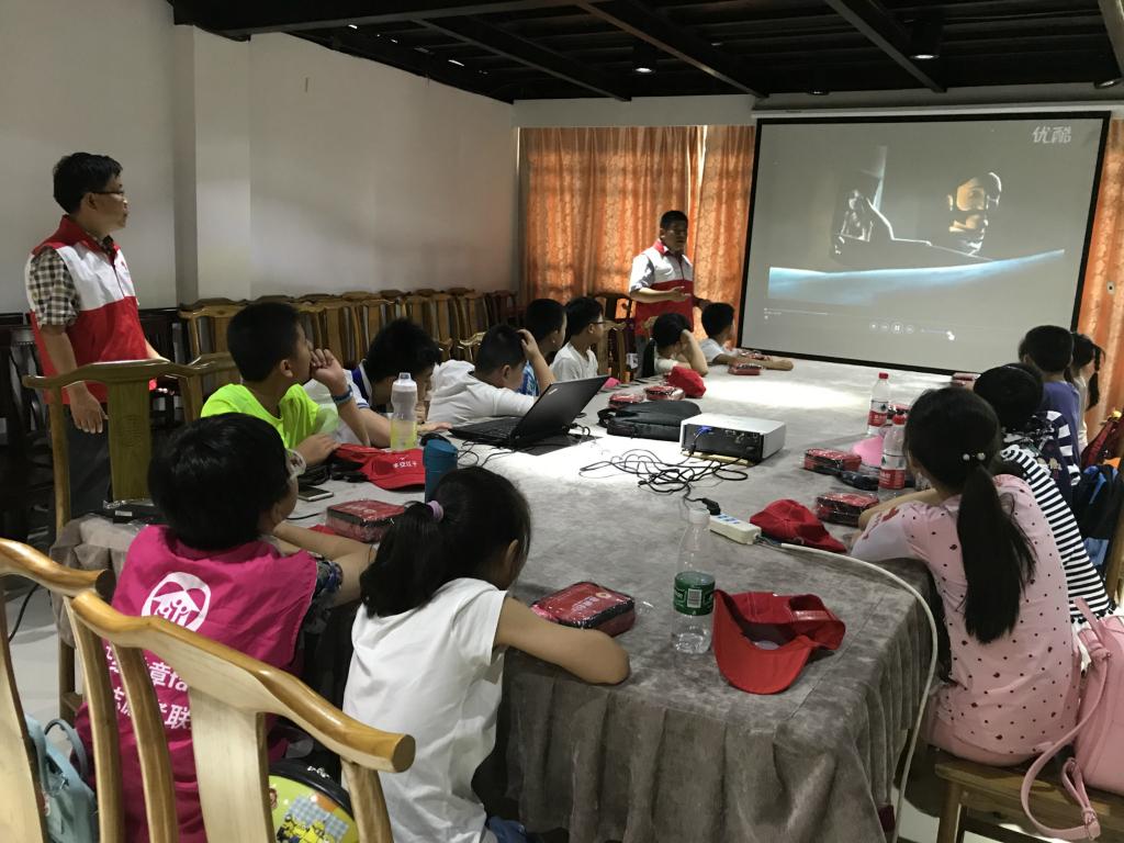 夏令营的最后一站,营员们来到了位于丁蕙实验小学的江干区红十字青少年生命教育基地。基地占地600平方,由应急救护培训专用教室、心理咨询教室、自然灾害体验馆等组成,这也是杭州市主城区唯一一个红十字主题的关爱生命基地。基地建设着力突出趣味性、参与性、互动性、科学性,以“时光列车”不同“站点”的形式,实景模拟地震、火灾、台风、公交车、地铁、电梯等生活中可能出现的意外情况,同时充分利用声、光、电、影视等现代化科技展示形式,以信息化为平台和载体,使广大青少年在“身临其境”的参观、学习、体验中的受到启迪、掌握知识、懂得如何保护自己与有效救助他人,将意外伤害所造成的损失减到最低。