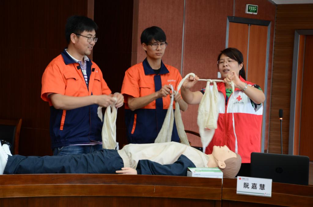 6月20日下午,为提高员工应对突发事件的应急自救、他救能力,椒江区红十字公益应急救护普及培训走进台州吉利罗佑发动机普及应急救护知识和技能,三十余名员工参加本次普及课。 区红十字应急救护阮佳慧老师为员工们讲授了红十字运动、心肺复苏、创伤救护基本技能(止血、包扎、固定、搬运)、现场救护等知识和技能。 课后,在讲师的带领下员工们积极地学习创伤救护技能并体验了模拟心肺复苏的操作。