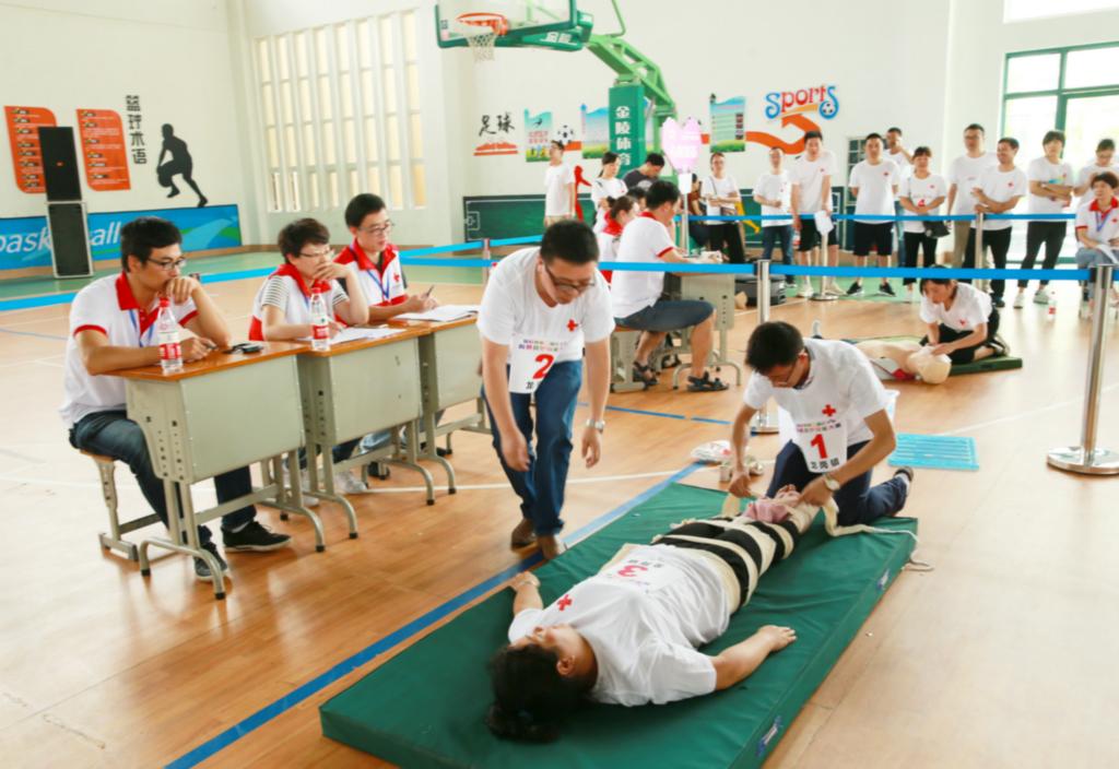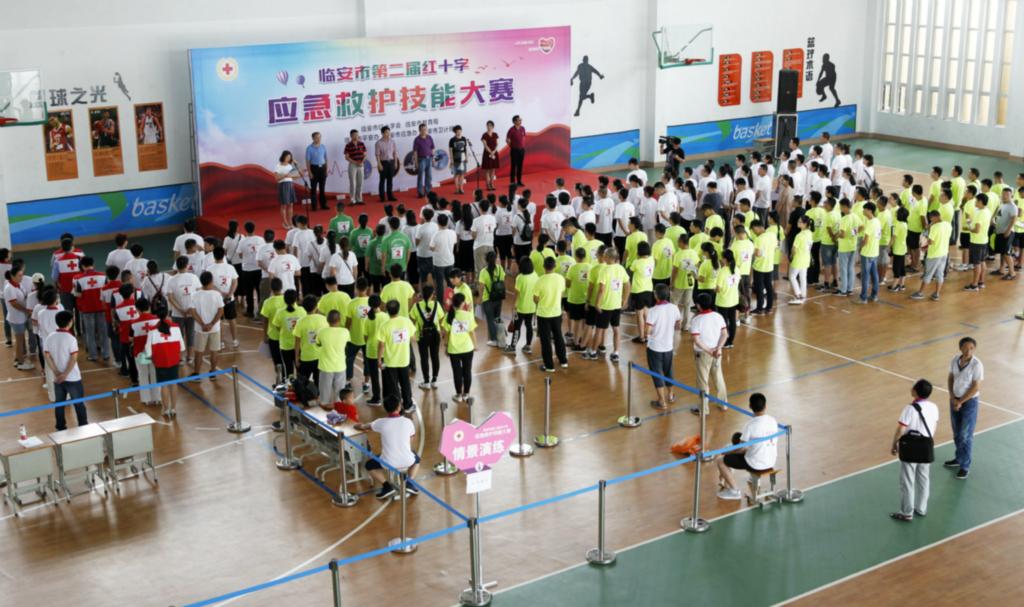 6月29日,临安市第二届红十字应急救护技能大赛在天目初级中学体艺馆举行,这次比赛共有18个镇(街道)和17所初中的35支代表队参加,开展了一场“救护技能大比武”。杭州市红十字会副会长何校生和临安市副市长高吉亚观看了比赛。 本次比赛的项目由心肺复苏和情景演练两个部分组成,心肺复苏由各代表队派1名队员参赛,比赛时间3分钟,完成5个循环;情景演练从2个竞技项目中(一是意外伤害多发伤;二是交通事故复合伤大腿骨折固定、脚掌断离)抽取1个情景模拟题进行比赛,时间8分钟。为了保证比赛的客观、公平、公正,比赛还专门邀请了杭州市红十字会的专业人员作为裁判。通过三个多小时的比赛,锦城街道、於潜镇、高虹镇代表队获镇街组一等奖,天目初中、岛石中心学校、於潜二中代表队获学校组一等奖。 临安市副市长、市红十字会会长高吉亚表示,一直以来,市委市政府都高度重视应急救护培训工作,鼓励支持全市广大红十字组织围绕“关爱生命、‘救’在身边”的主题,积极开展应急救护培训。经过几年的努力,培训已经走进了机关和企业、走进了学校和社区、走进了农村和文化礼堂、走进了农家乐和高危行业,深受广大群众的欢迎和好评,取得了良好的工作绩效和社会效应。今年,我们将持续推进这项工作,完成公益性普及培训2万人次以上,领证救护员达到2千人以上。这次应急救护技能大赛的成功举办,既检验和展示了这几年我市应急救护培训的成果,也为今后的培训工作打下了坚实的基础。