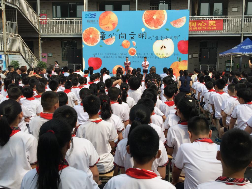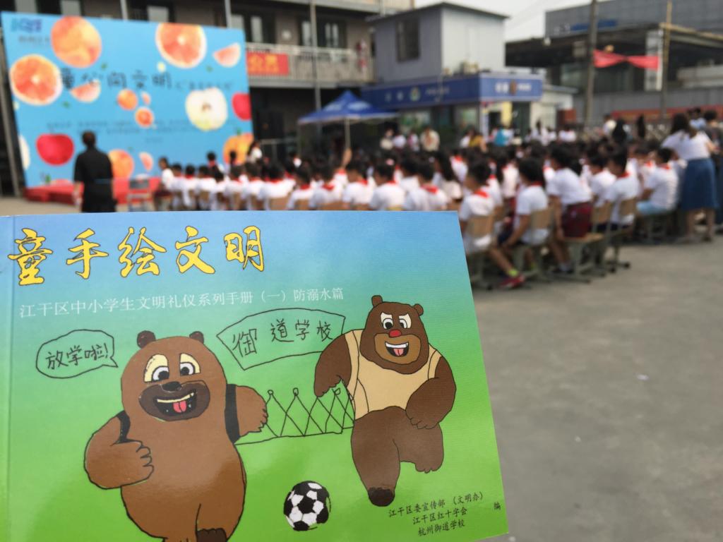 在杭州市江干区,有一所特殊的学校——杭州御道学校,之所以特殊,是因为该校的1300余名学生均来自全国各地。 为进一步深入推进“红十字急救进校园”活动,让来自五湖四海的同学们能更好掌握自救互救知识技能,6月2日,江干区在御道学校启动“童手汇文明”主题活动。在江干区新杭州人红十字志愿者们的精心指导下,同学们结合前期参加红十字关爱生命讲座的心得体会,以动漫人物“熊大”、“熊二”形象为原型,模拟在放学后玩耍不慎落水后,应该如何正确呼救并开展岸边救护、水中救护、后续急救等知识点,每一幅画都是由同学们亲手绘成,以“童手绘文明”形式,向全区同龄人和未成年人普及安全急救知识。画册首批印制1万册,将陆续发放到全区幼儿园、中小学生手中。 六年来,杭州市江干区红十字会通过对每一个同学开展的红十字急救知识技能掌握情况问卷调查,结合孩子们的年龄层次,将心肺复苏、四大创伤、校园意外伤害防范、走进青春期、走失、防踩踏、平安返乡等专题讲座的课件用同学们喜闻乐见的动漫人物“喜洋洋”、“熊大”等形象进行授课,并加入了儿歌、童谣、趣味游戏等形式,确保大家“愿意听”、“听得懂”、“记得住”、“学得会”。培训效果。六年来,1176人次的红十字志愿者为同学们送上了 96场次的红十字关爱生命主题讲座,全方位助力新杭州人子弟在杭州这个第二故乡平安、快乐成长。 红十字志愿者们的辛苦付出得到了学校广大师生和家长的一致好评。学校陈忠民副校长介绍:“通过志愿们系统性的普及急救知识,学校意外伤害事故发生率大幅度降低,学生们自我防范意思得到了提升。在区红十字会组织的校园急救知识竞赛中,同学们取得的优异成绩,红十字校园专题讲座得到了学校、师生和家长的欢迎和认可。”
