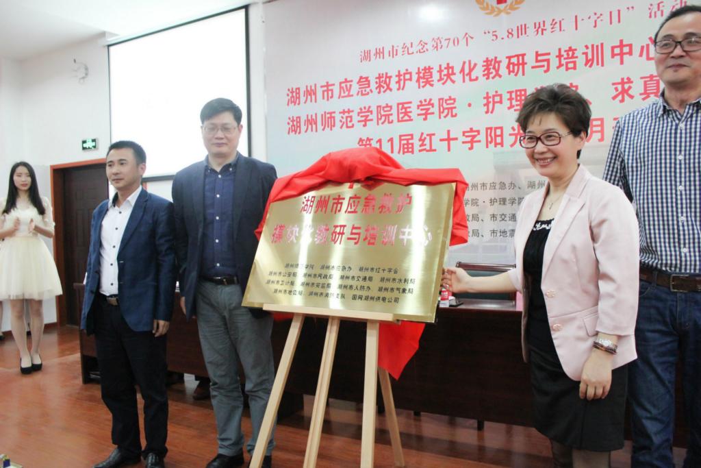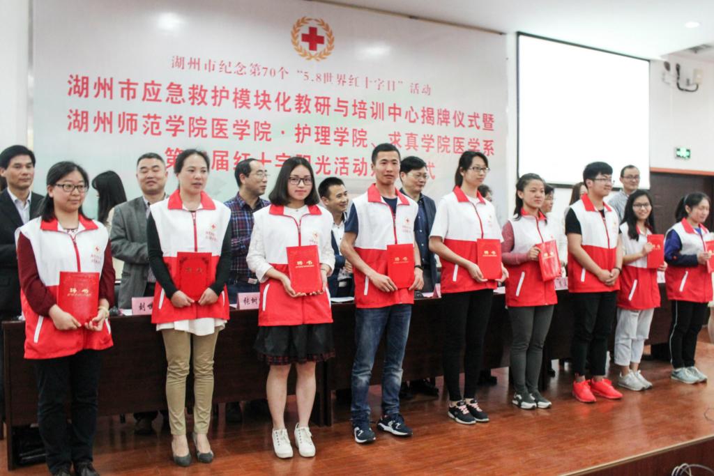 5月5日,以湖州市红十字应急救护学院为依托,由市应急办、市红十字会、湖州师院医学院等14个市级部门合作共建的湖州市应急救护模块化教研与培训中心在湖州师范学院医学院正式挂牌成立,这标志着我市应急救护培训在“政产学研联动”方面迈出了探索性的一步。 新成立的应急救护模块化教研与培训中心主要由医疗急救、运动损伤、心理救助、儿童急救、防灾避险等14个模块所组成,由20名来自不同行业系统的专家担任导师进行授课及培训。教研和培训中心今后将主要围绕学术研究、教学培训和公益宣传等三方面,借助高校的智库、学术、专业和学科、教学场地和设备、大学生志愿者等方面的优势资源,通过学术交流、科学研究、人才培养、决策咨询、平台开发、志愿服务、社区共建等形式,开展应急救护学术指导和师资培训,现场为所聘专家颁发《聘书》。 活动期间,湖州师范学院红十字志愿者还进行了“我是红十字人”的集体宣誓活动。此次教培中心挂牌活动也是我市纪念第70个“5.8”世界红十字日暨2017年红十字博爱周系列活动之一。