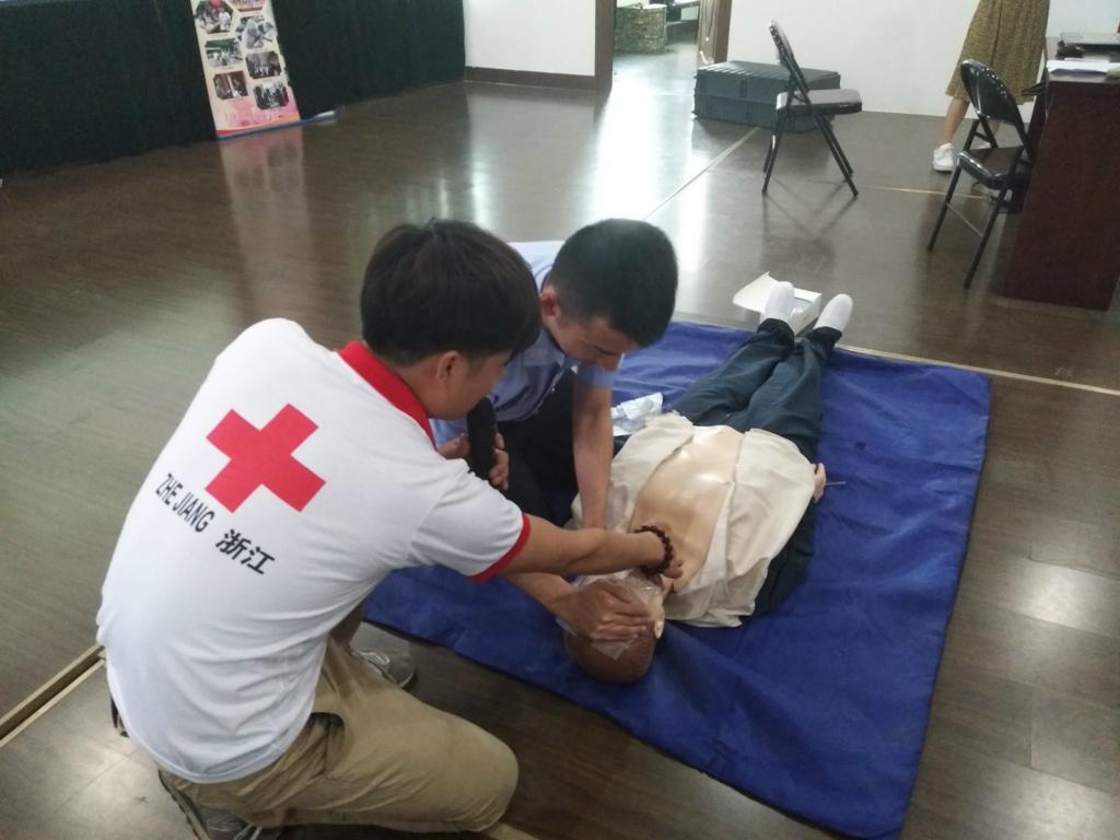 “手臂要垂直”、“先打开气道再吹气”……培训师耐心的指导居民进行操作。