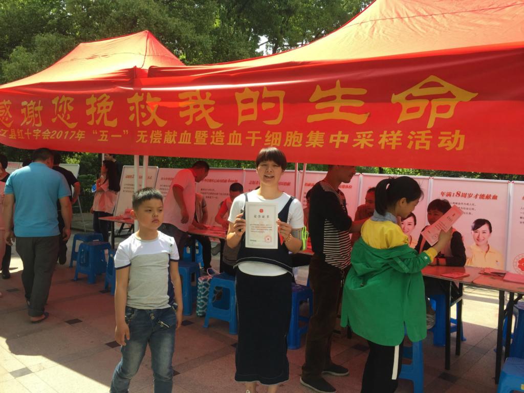5月1日,浦江县红十字会和县献血办在浦江文化广场献血车旁开展了无偿献血和造血干细胞捐献集中采样活动,红十字生命关爱志愿队和浦江狮子会仙华分队的志愿者协办。 活动现场热情似火,不断有爱心人士前来参加献血和造干采样。县红十字会、献血办工作人员和志愿者们耐心、专业地解答着各种询问,并认真做好采血、登记。 当天,有167名爱心人士参加无偿献血,献血总量共计53000ml;参加造血干细胞无偿捐献采样共有26人。