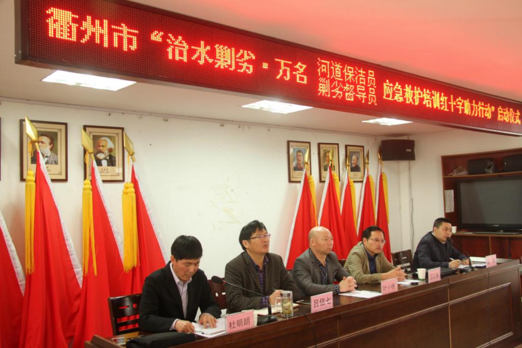 4月27日上午,衢州市“剿灭劣Ⅴ类水——红十字在行动”暨万名河道保洁员、剿劣督导员应急救护培训红十字助力行动启动仪式在衢江区大洲镇举行。