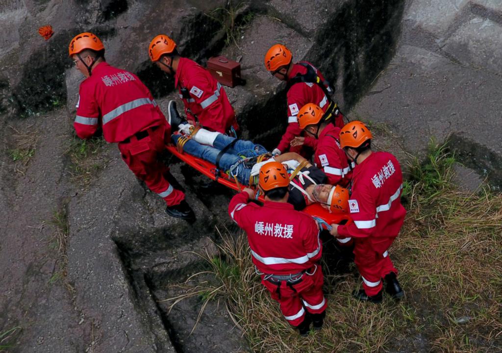 5月7日上午,嵊州市红十字应急搜救队的队员们,在甘霖镇苍岩村组织开展了综合性山地救援演练,成功将一名“伤员”,从80米高的山崖成功施救。