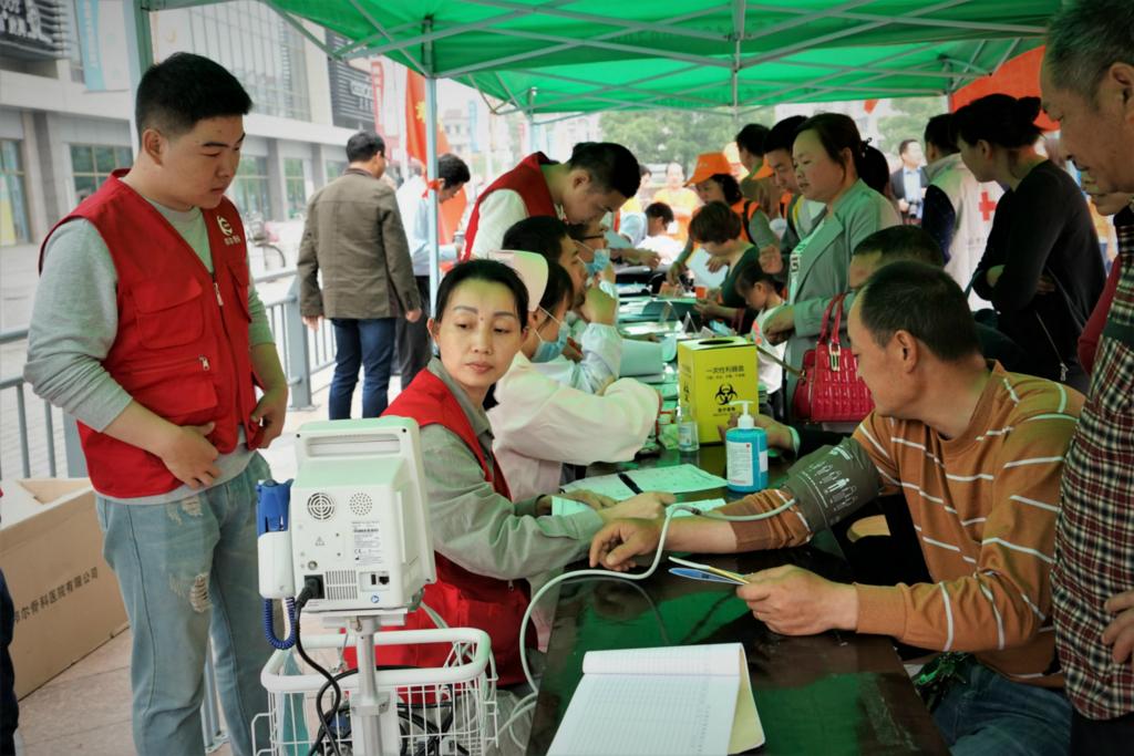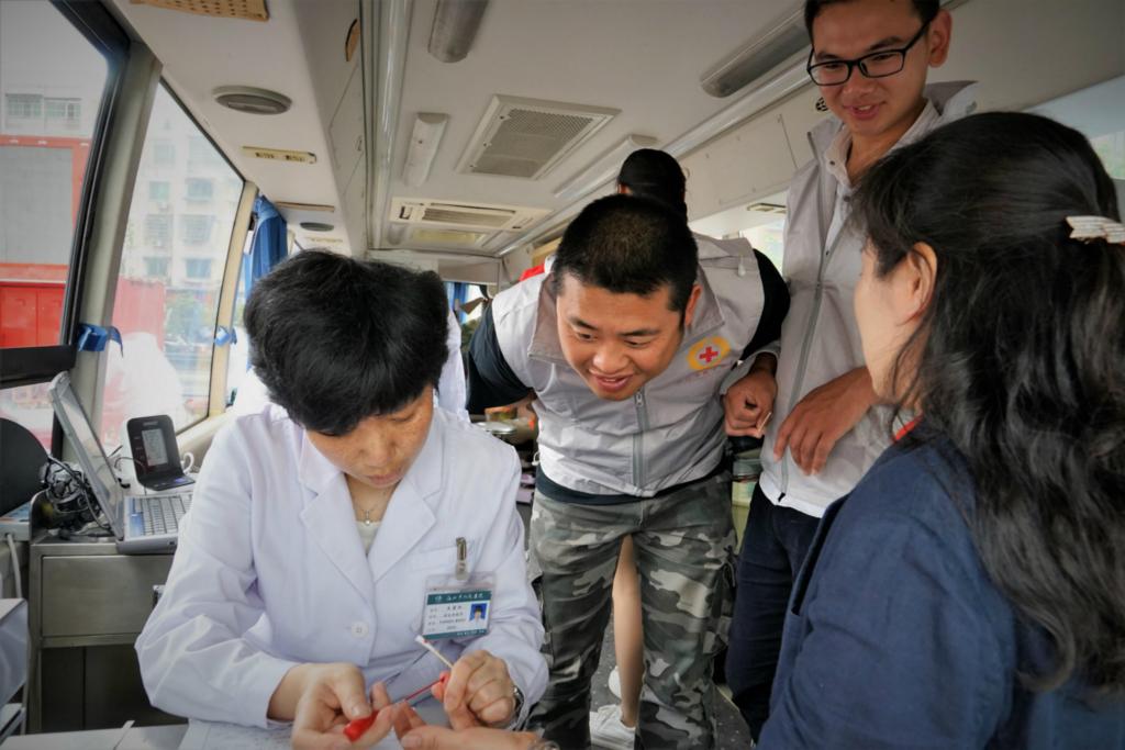 活动当日,特意邀请献血办将流动献血车开到活动现场,方便现场群众无偿献血。红十字志愿者热情的为参与无偿献血的群众提供服务,有的志愿者负责指导填写无偿献血信息登记表,有的提供关怀服务,和初次献血者聊天,缓解其紧张情绪,为其倒一杯糖水补充体能等等。同时,红十字会工作者对献血对象进行造血干细胞知识宣讲,鼓励他们下次献血时进行造血干细胞血样采集。活动累计义诊100人,献血18人共6000毫升,发放宣传资料1200余份。
