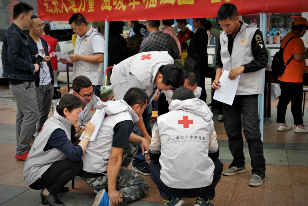5月5日,为纪念第70个世界红十字日,弘扬“人道、博爱、奉献”的红十字精神,江山红会组织献血办、滴水公益、建行、法院、国税局、城北社区在市区城北广场(老火车站)开展以“汇聚人道力量,温暖幸福江山”为主题的红十字博爱周志愿服务活动,以此传播红十字文化,提高红会社会美誉度。