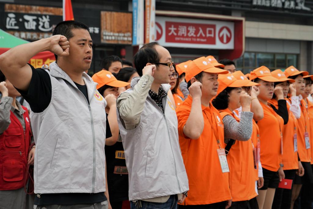 活动现场,红会干部、红十字志愿者们排成整齐的队列,准备进行“我是红十字人”主题宣誓。随后,市红会专职副会长陈良龙同志领读宣誓词,全体人员面对红十字旗帜进行了庄严宣誓,“我是红十字人,热爱红十字事业,遵守红十字会法......”。红十字救援队队员叶祥飞说:“今天的宣誓仪式很有意义,通过宣誓我感觉到身为一名红十字人的荣誉感和使命感,今后,我将更加深入的参与各项红十字公益活动,同时,介绍身边的朋友也加入这项光荣而伟大的事业。”
