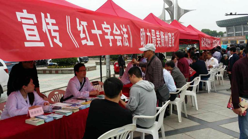 “我是红十字人,热爱红十字事业……”5月5日上午,衢州市区南湖广场上响起阵阵激昂的宣誓声,由衢州市红十字会、衢州市卫生计生委联合举办的衢州市纪念五•八世界红十字日广场活动暨新《红十字会法》宣传活动正在这里进行,共有近百名红十字工作者、志愿者参加宣誓仪式。方阵中的每个红十字人都用发自内心的声音抒发对红十字事业的热爱,面对白底红十字旗,大家接受了一次身心的特殊洗礼。 活动现场,有新修订的《红十字会法》宣传、医疗专家义诊、心肺复苏演示、无偿献血、造血干细胞及人体器官捐献知识普及等内容,吸引市民近千人,共发放宣传资料600余份。在心肺复苏演示台,红十字救护师资耐心给过往市民讲解现场救护的技巧,许多热心市民积极参与其中。来自市级各医疗卫生单位的专家义诊咨询受到市民的欢迎,前来义诊咨询的市民络绎不绝。 今年5月8日是第70个世界红十字日,也是新修订的《中华人民共和国红十字会法》施行的日子。在5月8日前后的红十字博爱周期间,衢州市红十字会还将举行全市防溺水现场观摩活动,组织全市红十字知识竞赛暨“朗读者——我与红十字的故事”分享会,开展助力治水剿劣骑行活动、户外骑行应急救援保障等主题宣传活动,让更多的社会公众了解红十字会、走进红十字会。