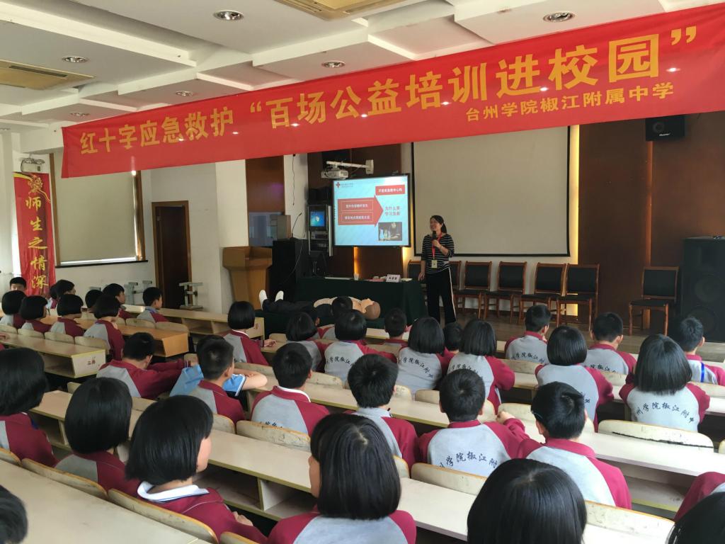 为宣传红十字知识、增强师生紧急避险和自救互救的意识和能力,保障师生的生命安全和身体健康,4月24日,椒江区红十字会在台州学院椒江附属中学开展了应急救护“百场公益培训进校园”活动,240名师生参与本次活动。