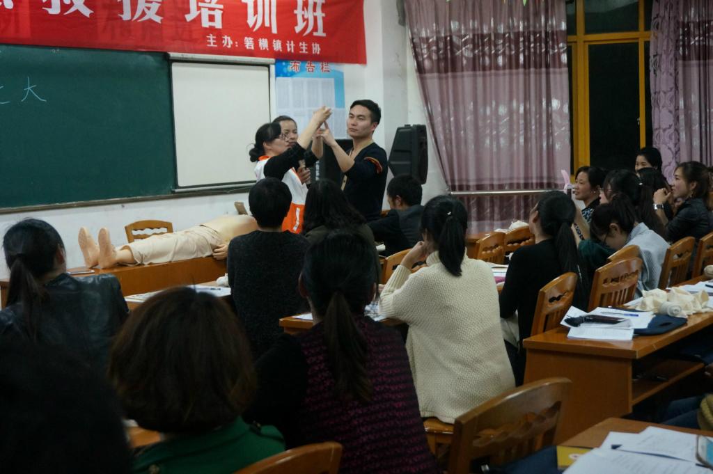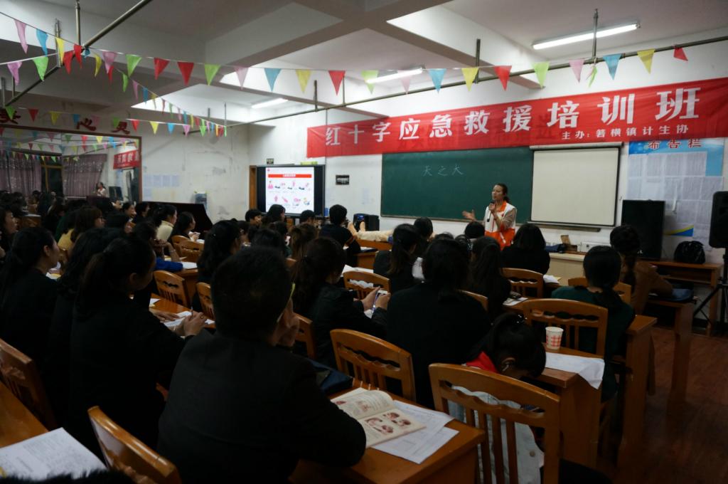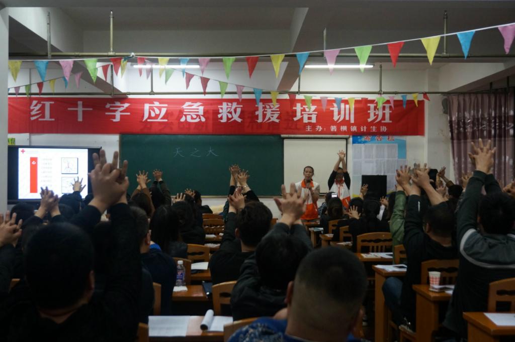 4月6日晚上7点,浙江省温岭市箬横镇文化中心的会场依然灯火通明,农技校的学员们各个热情高涨,集体合唱《珍惜》来欢迎救护师们。当晚,温岭市红十字会救护培训师为农技校学员们带来了一堂生动活泼的急救知识课。