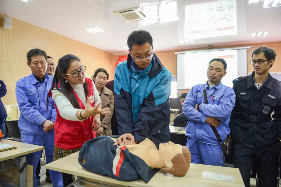 在启动仪式上,市红十字为基地赠送了20个红十字急救箱,5000份意外伤害现场处置知识宣传册,并配备了两具心肺复苏模拟人。启动仪式结束后,首期150人参加的红十字救护员培训立刻展开,应急救护师主要通过PPT讲解、现场示范的形式,讲解心肺复苏、气道梗塞现场处置;穿插触电、高空作业等知识点,应急救护师边授课边演示,向大家普及常见急救知识,现场还和学员进行了互动学习交流。接下来岱山县红十字会还将与基地指挥部联合开展多期培训,力求实现应急救护知识全覆盖。同时,市、县红十字会还将根据基地需要,提供急救箱等全方位的支持,服务基地建设,为施工人员安全提供保障。(蒋朝进)