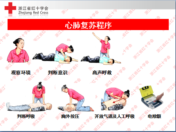 高声呼救:患者没有意识就要立刻高声呼救:“快来人呀,这里有人晕倒了”,表明身份取得周围人支持;并且指定人员拨打120电话,指定人取AED。