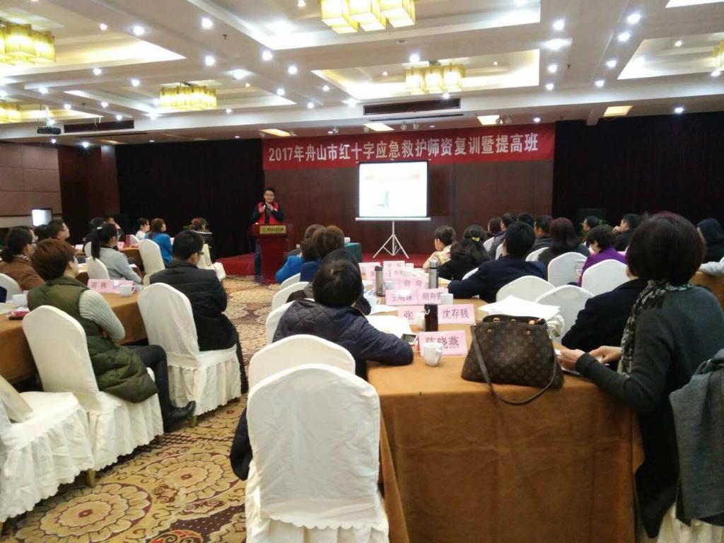 为了进一步提高我市应急救护培训师资授课水平,加强师资队伍建设,推进救护培训工作的长效、持续发展,近日,舟山市红十字会首期应急救护师资复训暨提高班在定海举行,来自各县(区)、市本级各基地的57名学员参加了培训。舟山市红十字会副会长叶跃胜出席开班仪式并讲话。