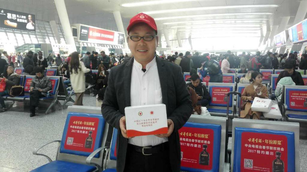 3月4日,余杭志愿者柴立见护送着志愿者队友钟先生捐献的血样,奔赴千里之外的北京。