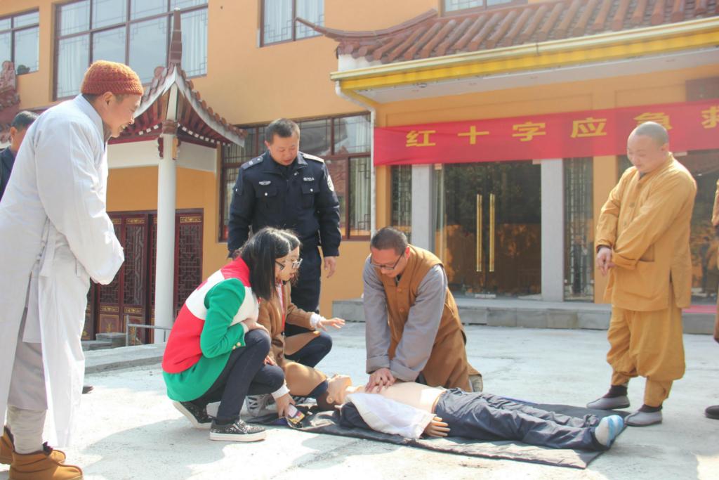 为了让更多的群众学习掌握现场应急救护技能,做到“人人学急救、急救为人人”,3月9日,吴兴区红十字会联合区民宗局,在青山常照寺开展了宗教界人士学急救活动。