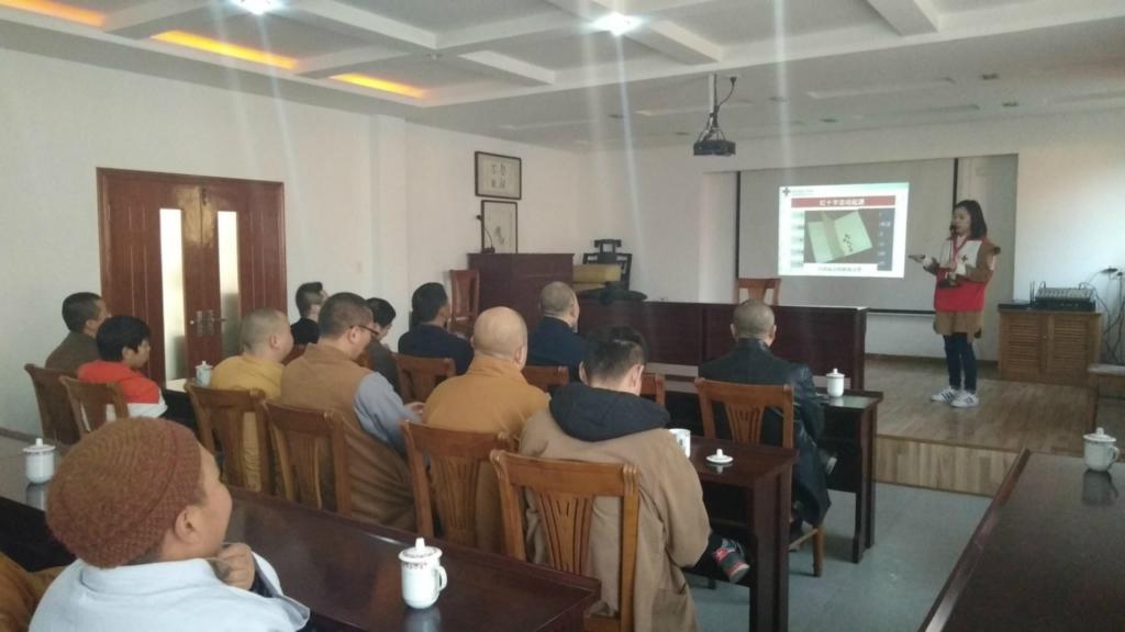活动现场,来自佛教界的30多名骨干参加,区红十字会救护培训讲师向大家介绍了红十字运动的起源等基础知识,讲解了现场救护的重要意义、心肺复苏技能等,并现场让大家实际操作了心肺复苏术。