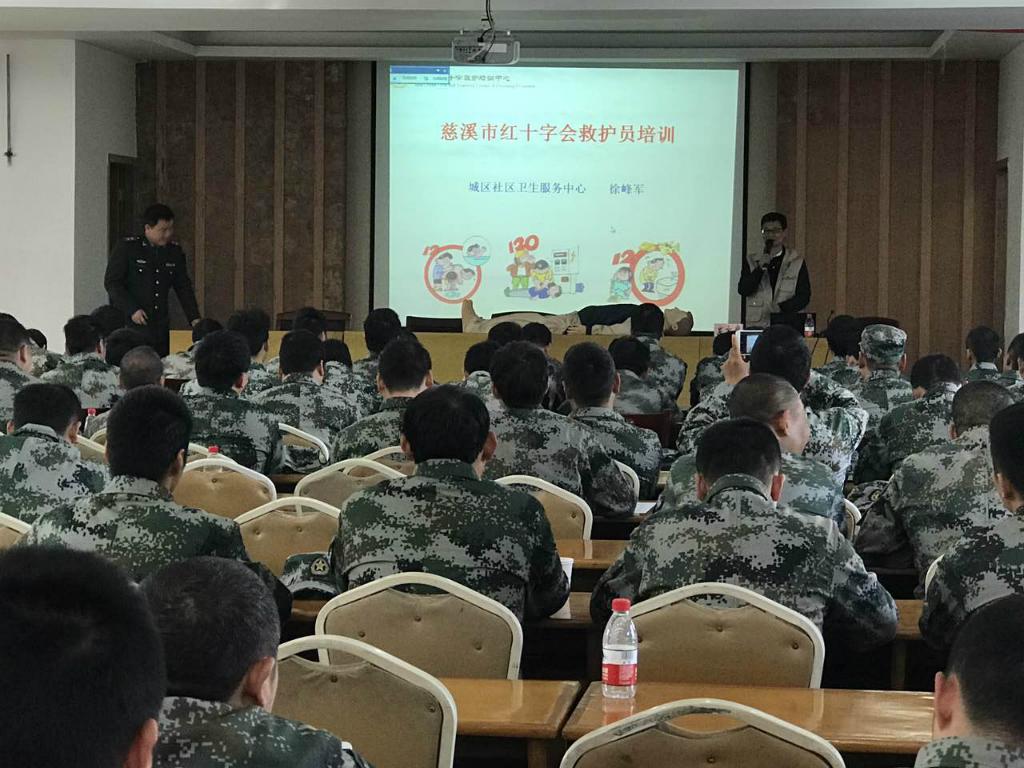 3月14日,慈溪市红十字会联合市人武部在桥头镇民兵训练基地开展应急救护培训,120余位民兵参与学习。本次培训旨在进一步提高民兵的综合素质,使他们能够掌握应急救护技能以便在自然灾害及突发事件中积极开展自救互救。 磁吸市红十字会救护培训讲师徐峰军老师通过PPT讲解及模拟人演练的方式,对心肺复苏术(CPR)、创伤救护、灾害事故现场特点及应急救护原则等应急救护知识进行了生动系统的讲解。课堂气氛活跃,学员们踊跃参与。