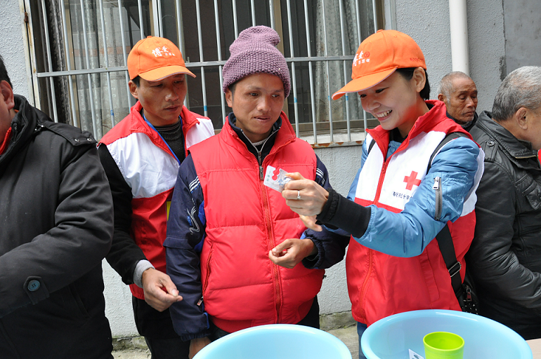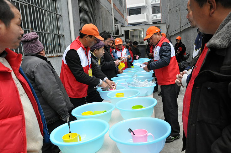 2017年2月16日上午,奉化区红十字博爱志愿者来到溪口普天乐健康乐园,举办了一次特殊的教学活动——“阳光助残”活动。“阳光助残”活动是奉化区红十字博爱志愿服务队新成立的一个项目,旨在帮助残疾人学会最基本的生活自理能力,并坚持康复训练,在长期的帮助下,改善他们的生存状态,让他们能够学会独立的生活并收获生活的乐趣。 这次活动的教学内容是教这些特殊人群洗脸、刷牙和广播体操。以后每个月将视残疾人的学习情况逐步推进学习内容。(郎玲玲)