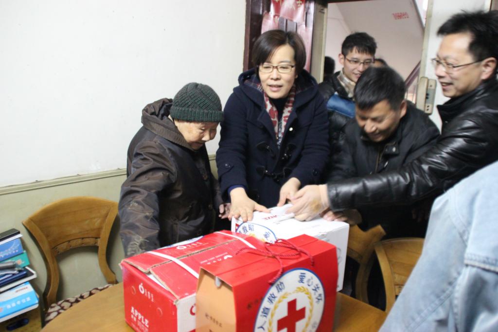 严冬奉献爱,善举暖人心。2017年的1月23日下午,江北区人民政府张颖副区长、区红十字会陆稚波副会长一行,拎着米、油、被子、水果、炖锅等物品来到了位于白沙街道大庆社区的赵淡梁家中慰问。“谢谢政府,这么冷的天还来看望我们!老赵让我一定要代他谢谢你们!”赵淡梁肢体残疾的妻子接过慰问品,不停地说着感谢的话。而她的丈夫赵淡梁身患食道癌目前还在医院进行医治。张颖副区长详细询问了赵淡梁的病情和一家人目前的生活状况,嘱咐他们要保重身体,重燃生活希望。随后,一行人又去看望了白沙社区年老体弱的桂文英老人和不久前刚捐献完造血干细胞的社工王蔷。此次慰问活动拉开了“2017年博爱送万家”的帷幕。