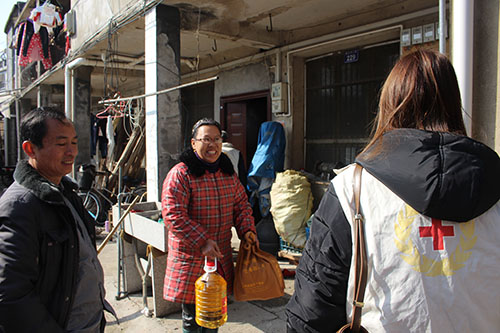 1月22日,黄岩区红十字志愿者协会开展“博爱送万家”活动,组织20余名志愿者前往南城街道、北城街道、江口街道、澄江街道、上郑乡走访慰问30户困难家庭,为因病致贫家庭、五保户、孤寡老人、身体或智力残疾人士送去食用油、大米、黄花菜、香菇、黑木耳、核桃仁等年货和新春祝福,共计发放价值约8000元的爱心物资。