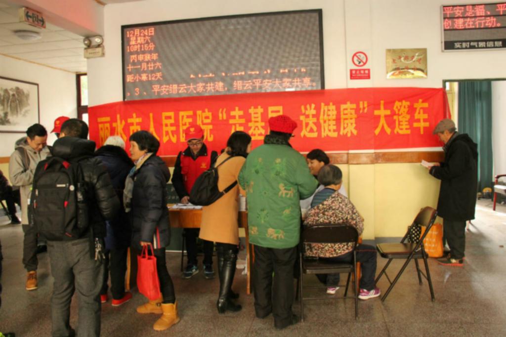 12月24日,“健康大篷车”大型义诊暨丽水帮帮团公益联盟县市行活动走进缙云,来自丽水市人民医院的10位专家医生在缙云县老年大学为市民进行义诊。