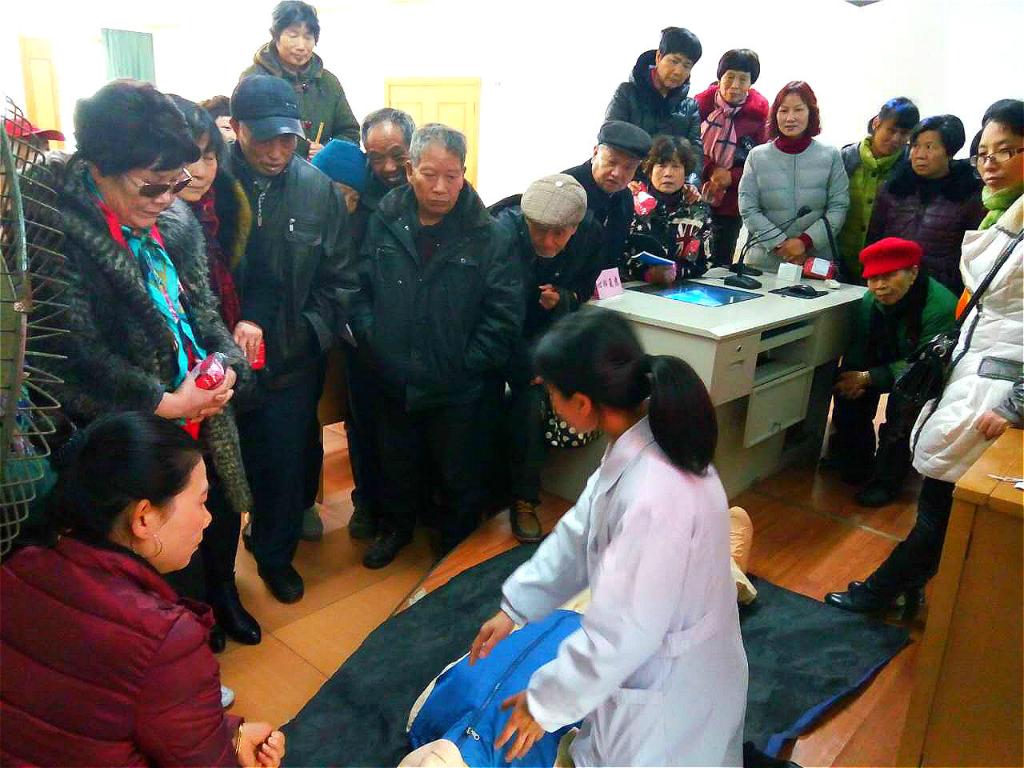 在义诊的同时,丽水市人民医院急诊医学专家还在3楼教室,为市民、热心公益的志愿者们现场传授心肺复苏、常见病急救知识和技能。