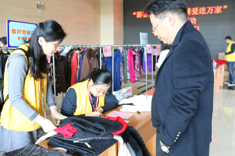 早上9点30分,市红十字会的“新春送暖——红十字博爱送万家”爱心义卖正式开始了。只见现场整整齐齐挂着几排衣服,上面标着50——150元不等的价格。这些衣服是分别是舒工坊、梦巴黎、元盛制衣三家单位捐赠的,它们不仅质量好,而且价格也实惠,基本在2折左右。