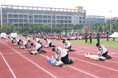 自2013年救护培训被纳入绍兴市十大民生实事项目以来,绍兴市红十字会联合绍兴市教育局积极开展教师、学生的救护培训工作,连续三年,教育局发文要求将救护技能普及作为新生军训必修课之一,并在开学季开展市直学校军训会操暨救护技能大赛。