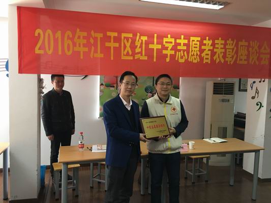 11月11日上午,江干区红十字会召开“2016年江干区红十字志愿者表彰座谈会”。江干区红十字会党组成员、副会长胡杭及红十字志愿者代表22人参加会议。