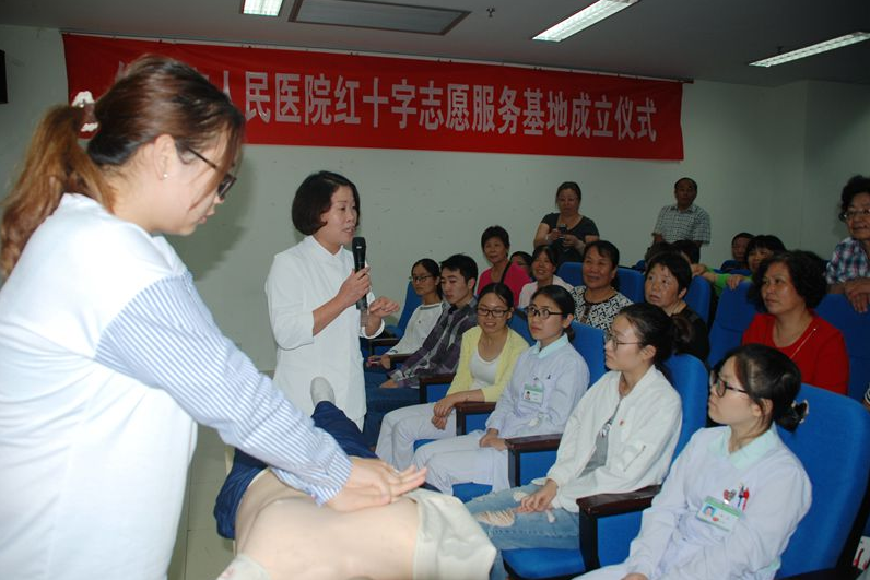 仪式结束后,来自市红十字会的骨干师资还对 60名志愿者开展了一场红十字运动以及应急救护的公益培训。