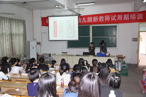 为提高学校师生的防灾避险、自救互救能力,全面普及应急救护知识,从2012年起,嵊州市教体局、市红十字会已正式将红十字应急救护技能培训纳入新教师岗位培训。每位参加培训的新教师在接受教师职业道德、课堂教学常规、新教师素质及专业成长等常规培训内容的同时,还需接受应急救护新概念、心肺复苏、止血、包扎、固定、搬运技术等急救常识与技能培训。