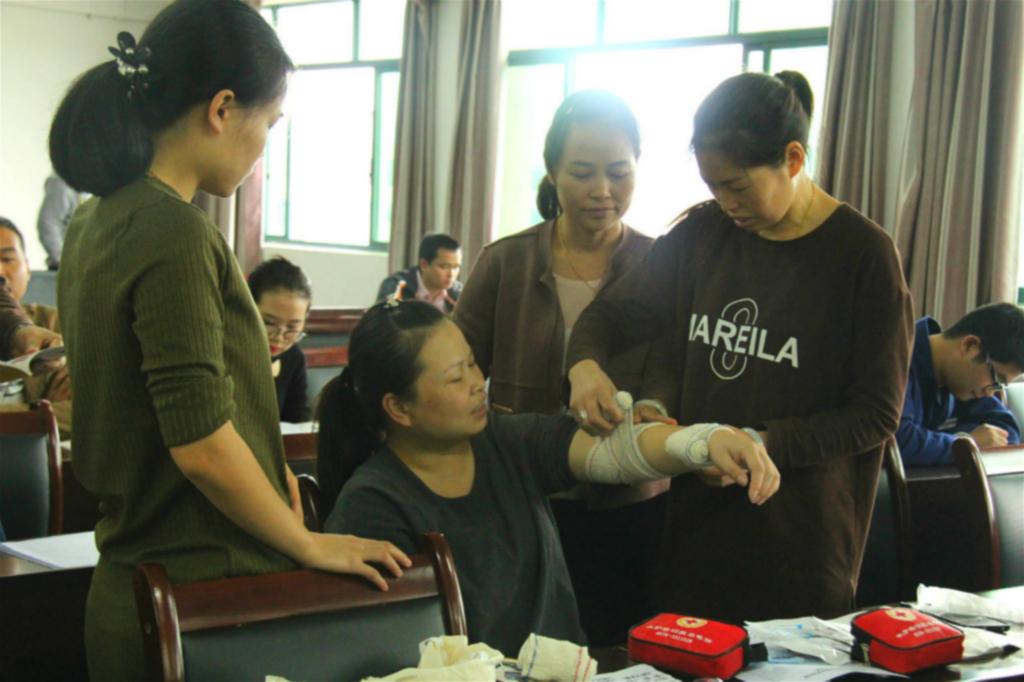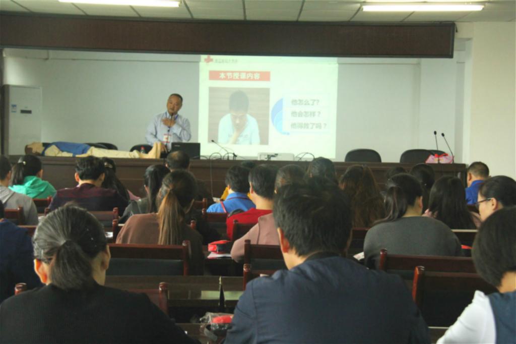 在救护培训中,红十字会救护培训老师围绕心肺复苏、外伤包扎、气道异物梗阻、中暑等内容为学员们做了讲解和实际演示,每位学员还在授课老师的指导下借助教学模拟人演练了心肺复苏、止血包扎等救护技能。培训老师手把手的训练,一个动作一个动作的纠正,学员们积极提问,现场气氛十分活跃。让学员切实掌握救护知识,掌握基本救护技能。红十字会还给学员们发放了《应急救护知识手册》和简易救护包。