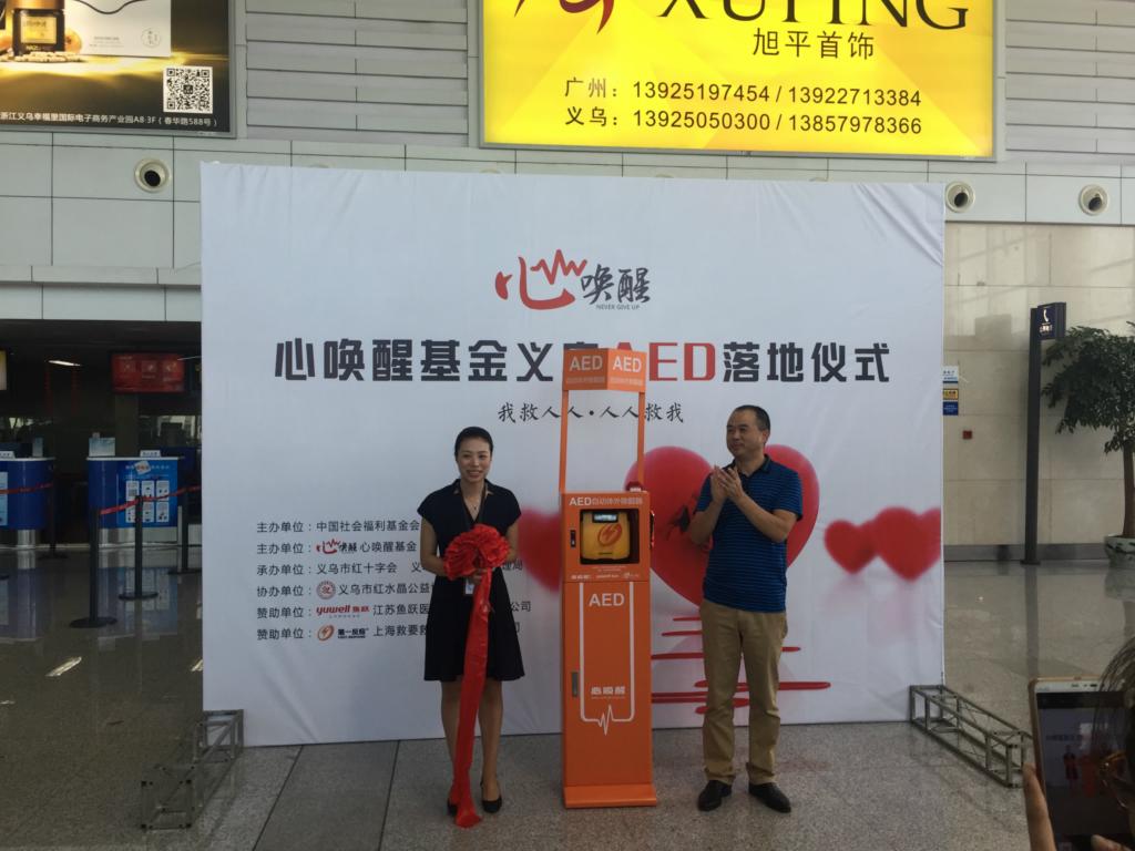 据悉,这两台AED是由中国社会福利基金会“心唤醒”基金会送出。(“心唤醒”基金由知名媒体人邓飞在今年7月发起成立,旨在推广AED普及和急救培训)最近,“心唤醒”第一期捐赠项目启动,由“鱼跃医疗”首批捐赠20台AED及立式报警箱,落户到了全国首批样板城市。在义乌市红十字会和红水晶公益协会积极争取下,其中两台落地到了义乌,使义乌成为我省首个收到“心唤醒”捐赠AED的城市。