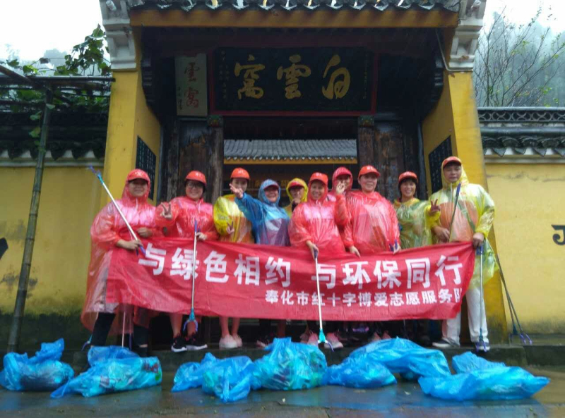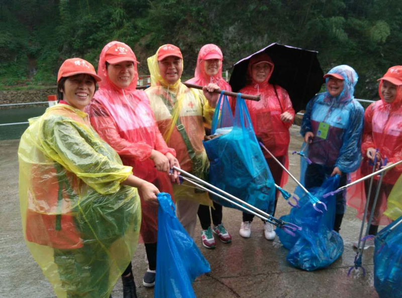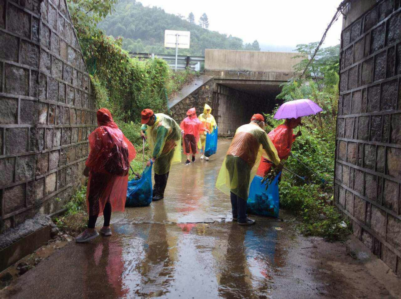 10月8日,奉化市红十字博爱志愿服务队开启“绿色之旅”第七站——奉化市尚桥白云窝。 秋雨斜飘,劈劈啪啪地下的恣肆任性。博爱志愿者们身穿五彩的雨衣,如一朵朵鲜艳的花朵绽开在蒙蒙的雨帘中。他们冒着雨不顾路湿泥滑,一路沿途捡拾着垃圾。 雨水与汗水交织,每个队员浑身都湿透了,可大家都很开心。短短的一段“绿色之旅”,大家并肩作战,相互扶持——路湿滑,大家手牵着手;东西重,你帮着我我帮着你,充分体现了“互相帮助、助人自助、无私奉献”的志愿者精神,也体现了“平等友爱、相互协作”的团队精神。