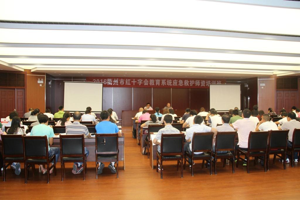 9月30日,随着第二期全市教育系统救护师资培训班的结业,由衢州市红十字会、市教育局联合举办的2016年全市教育系统救护师资培训工作正式结束,两期培训班共有116人取得红十字救护师资合格证。这些教职工将承担起所在学校的应急救护员培训和救护知识普及任务,今后在校的学生就可以在自己学校跟着自己的老师学救护知识了。 师资培训班期间,市红十字会党组书记、常务副会长叶浩平,市教育局党委副书记、副局长蓝水高,市红十字会专职副会长叶小根,市教育局副局长、市红十字会副会长朱云福分别在开班仪式上讲话或参加培训班的巡考工作。每期培训班日程为5天,共有红十字运动知识、现场心肺复苏、紧急避险与逃生、创伤救护、常见急症意外伤害等授课课程,考核部分分为理论考核、试讲、实际操作考核等。 按照市红十字会、市教育局联合印发的《衢州市教育系统学校应急救护培训工作实施方案(2016年—2018年)》要求,衢州市三年内力争实现全市中小学学生救护知识培训全覆盖。各级各类学校将通过必修课、选修课、专题讲座等形式让所有中小学生能够了解和掌握自救互救技能,为推进“平安校园”、“和美校园”建设和创建全国文明城市作出贡献。