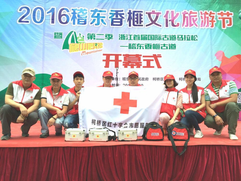 9月30日,浙江省首届国际古道马拉松在稽东镇拉开帷幕,为及时提供有效的医疗救助,保护群众生命安全,柯桥区红十字会第一时间派出AED(自动体外除颤器)应急救援志愿服务队来到活动现场,全程布点,实时跟踪,全力确保赛事安全,这是该志愿服务队自今年8月正式成立以来的首次行动。
