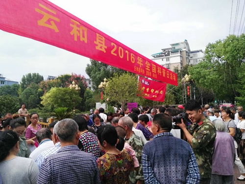 9月18日,云和县红十字会、县科协、团县委、县图书馆、县消防大队和9个社区联合在县城中山广场举办以“创新放飞梦想,科技引领未来”为主题的2016年“全国科普日”活动。云和县委副书记黄力量亲临活动现场指导工作。