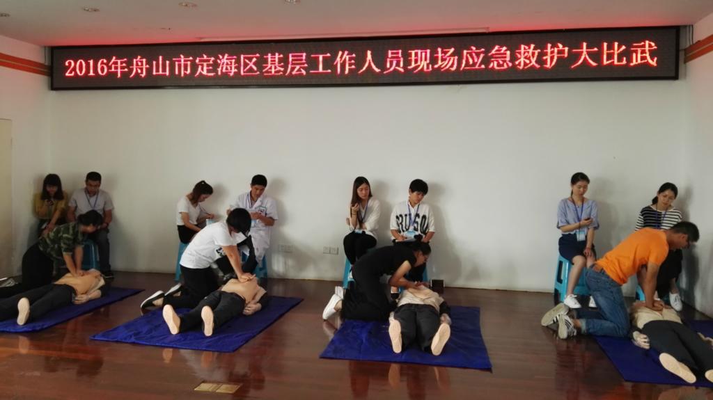 为进一步提升全区基层工作人员应急处置综合能力,更好地服务两美定海建设,9月9日,定海区红十字会联合区人才办、区卫计局、区人社局、区总工会举办了“定海区基层工作人员现场应急救护大比武”。来自全区各镇(街道)的11支代表队、44名选手参加比武。